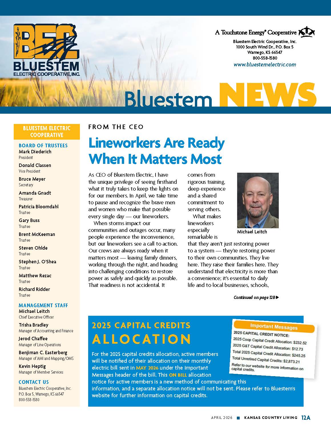 April 2026 Kansas Country Living Bluestem Electric Cooperative Centerspread